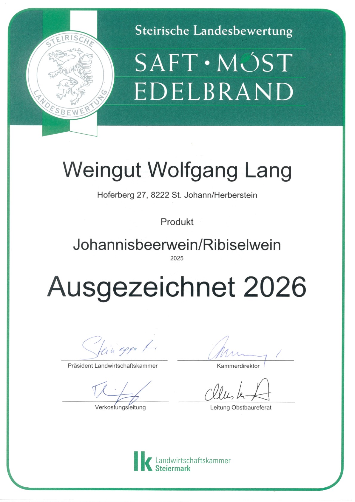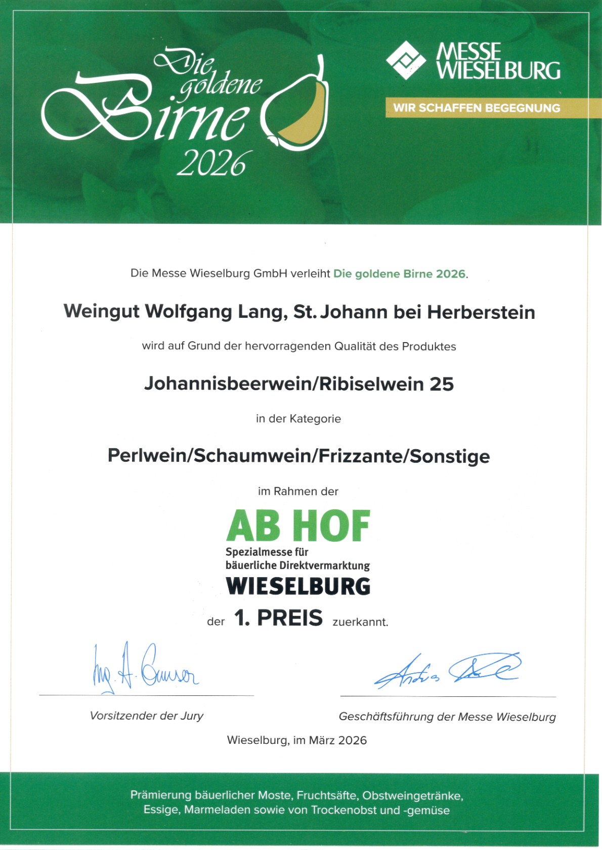 Dieser Johannisberwein – auch gerne Ribiselwein genannt – vom Weingut Wolfgang Lang ist Schwarze Johannisbeere in ihrer edelsten Form. Zuerst wird sie hochreif auf den Feldern des Weingut Wolfgang Lang geerntet. Daraufhin möglichst rasch und schonend verarbeitet. Und schließlich mit großem Fachwissen des Obstbau-, Weinbau- und Kellermeisters Wolfgang zur Reife gebracht. Im Glas zeigt sich dieser Obstwein farbintensiv. In der Nase der betörende Geruch der schwarzen Johannisbeere. Am Gaumen die perfekte Mischung aus trinkfreudiger Süße und typischer Säure. Die VitaminC-haltige heimische Beere zählt ja eigentlich zum Superfood. Die staatliche Überprüfung setzt der Flasche im wahrsten Sinne die Krone auf – mit dem Österreichischen Wappen in Gold als Qualitätsprüfsiegel.
