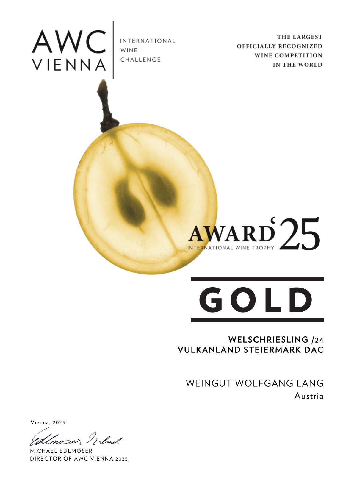 Und auch bei der AWC Vienna 2025 hat er eine Goldmedaille abgeräumt!